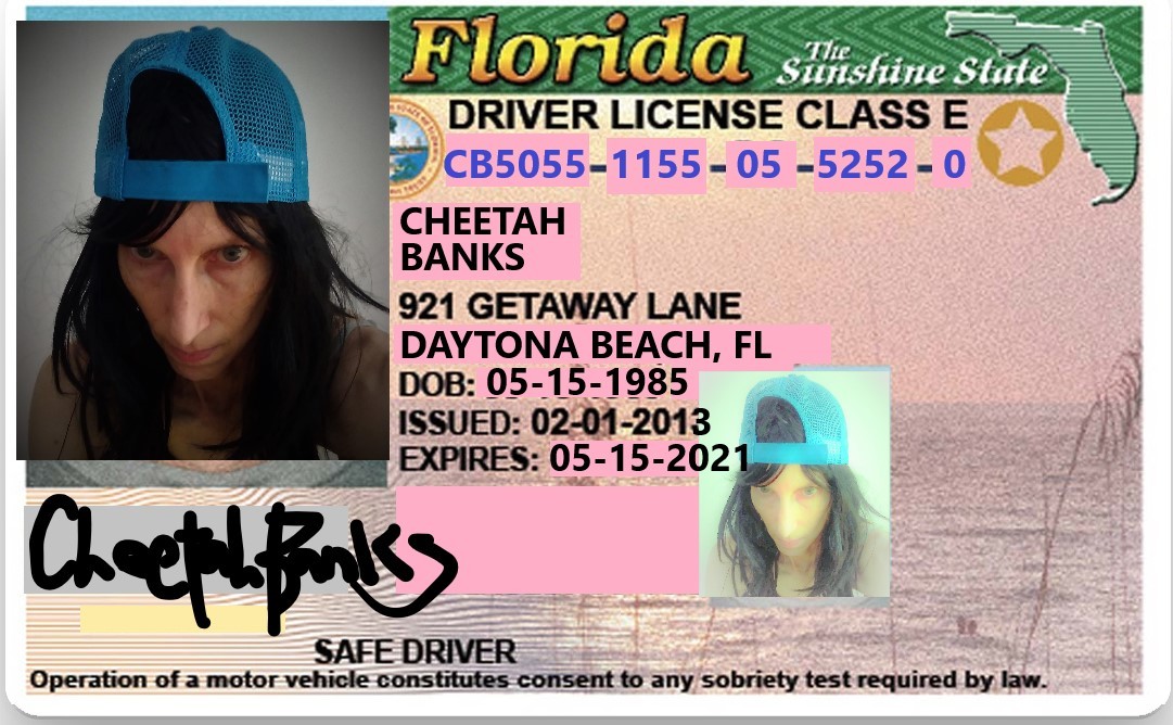 Nacida en Florida en los años 80, Cheetah Banks ha venido aquí para hacer visita, pero se encuentra con el carnet de conducir caducado y, por tanto, no puede volver a Florida. Cheetah explica cómo es vivir en una tierra extraña, ya sea aquí o allá. Con imágenes y escenas que van de lo más ridículo a lo más heavy, Cheetah comparte su mundo táctil y corporal que se encuentra en deslizamientos continuos entre las fisicalidades de carne y hueso y los bordes de la imaginación.